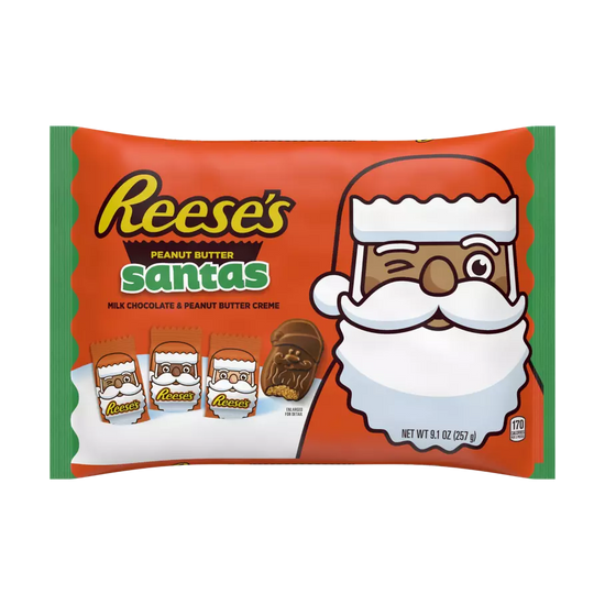 Indulge in a jolly treat with Hershey's Reese's Santas! These festive, large size bags hold 257 grams of creamy, peanut butter and chocolate goodness. Perfect for spreading holiday cheer or satisfying midnight cravings. (Warning: may cause Santa envy.)