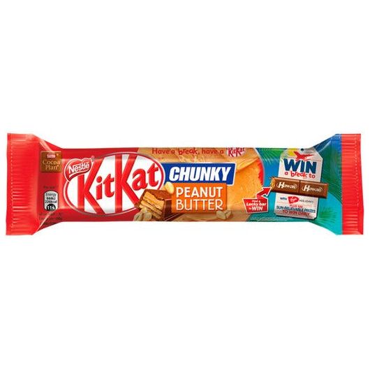 Get ready to sink your teeth into this chunky, peanut butter-filled Kit Kat bar! Perfect for satisfying your sweet tooth and peanut butter cravings at the same time. Each bar is a generous 40 grams, making it the perfect snack to keep you going throughout the day. Don't settle for plain chocolate, try this delicious twist today!