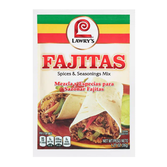 Spice up your fajitas with Lawry's Fajitas Seasoning! This 36gr blend of spices adds a bold and zesty twist to your Tex-Mex dishes. Let Lawry's take your fajitas to the next level!