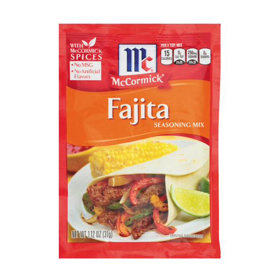 Spice up your meals with McCormick Fajita Seasoning! This 31gr packet of spicy goodness will add flavor and heat to your fajitas (and anything else you want to kick up a notch). Say goodbye to bland food and hello to a fiesta in your mouth. Ole!