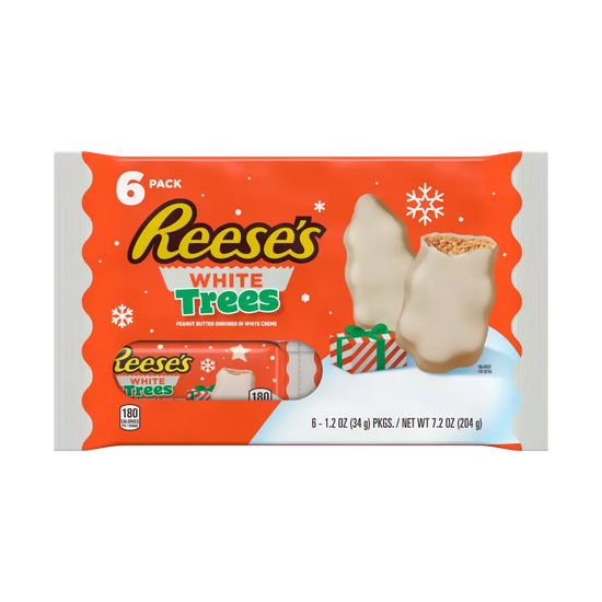 Indulge in the refined blend of creamy white chocolate and the signature rich peanut butter of Reese's Trees White Chocolate 6pk. This 205g package offers six elegantly crafted treats, perfect for sharing or savoring solo. Each piece combines smooth sweetness with a subtle nutty depth, delivering a sophisticated twist on a classic favorite. Ideal for those who appreciate a delicate balance of flavors in a chic presentation.