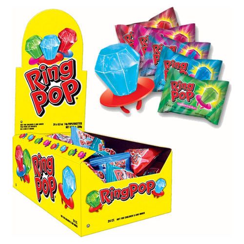 Pop on some fun with the classic Ring Pop! This 14gr candy ring is a playful twist on a sweet treat. No need to choose between accessories and snacks, have both with Ring Pop. (Just don't try to put it on your finger! LOL)